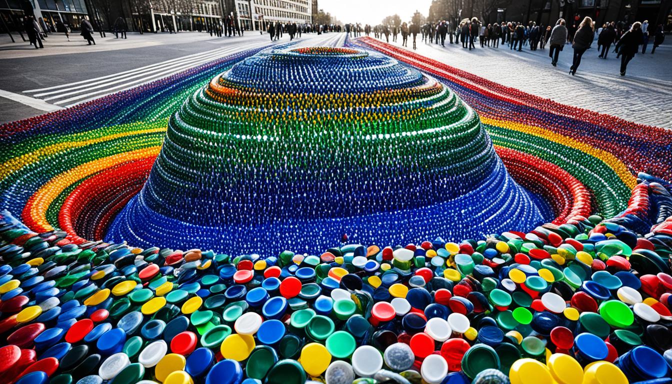 Imagine instruments made from recycled parts or mosaics from old bottle caps. These pieces show the beauty in what we often throw away. They make us value our environment more and think about the resources we use.