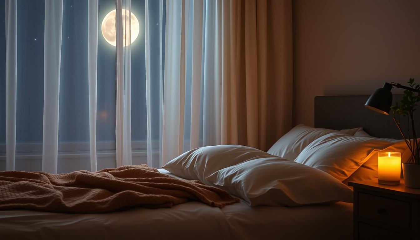 First, keep your sleep environment just right. Aim for a room temperature between 65°F and 70°F. This range helps you sleep better. Choose high-quality bedding that’s breathable and comfy. It lets your body stay at a good temperature all night.