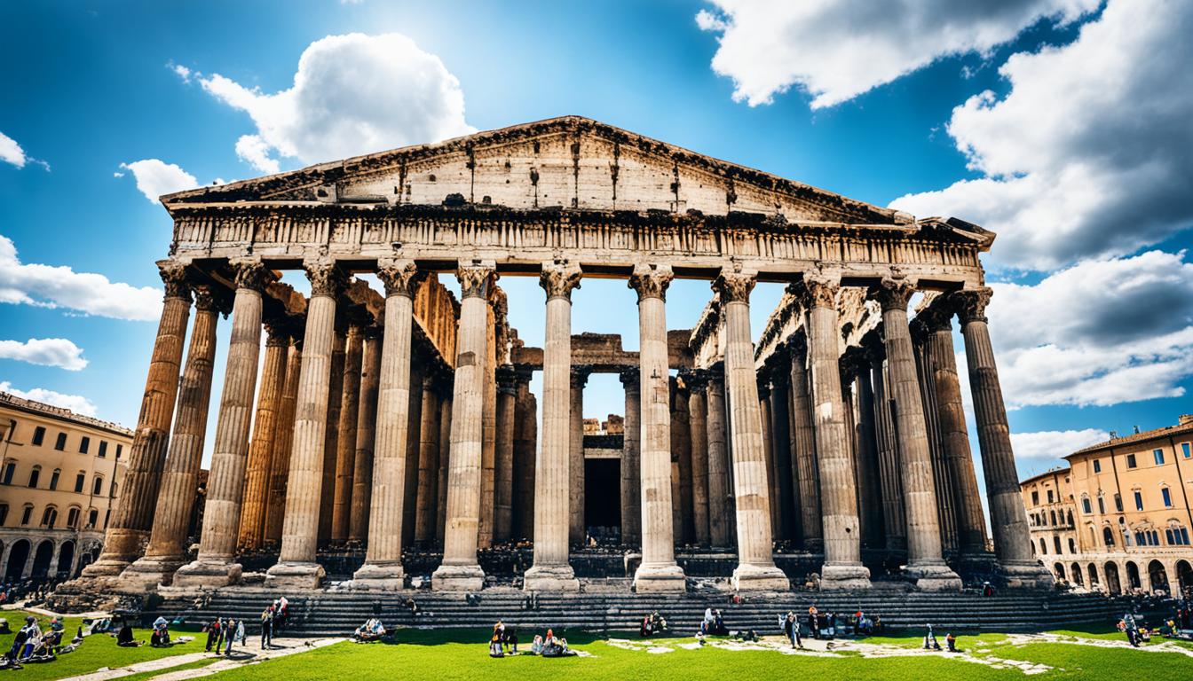 The Pantheon is a symbol of ancient Roman engineering skill. It has a huge, domed roof and complex construction methods. These show the amazing innovations in Roman architecture. The design combines Greek architecture with the Romans’ engineering skills.